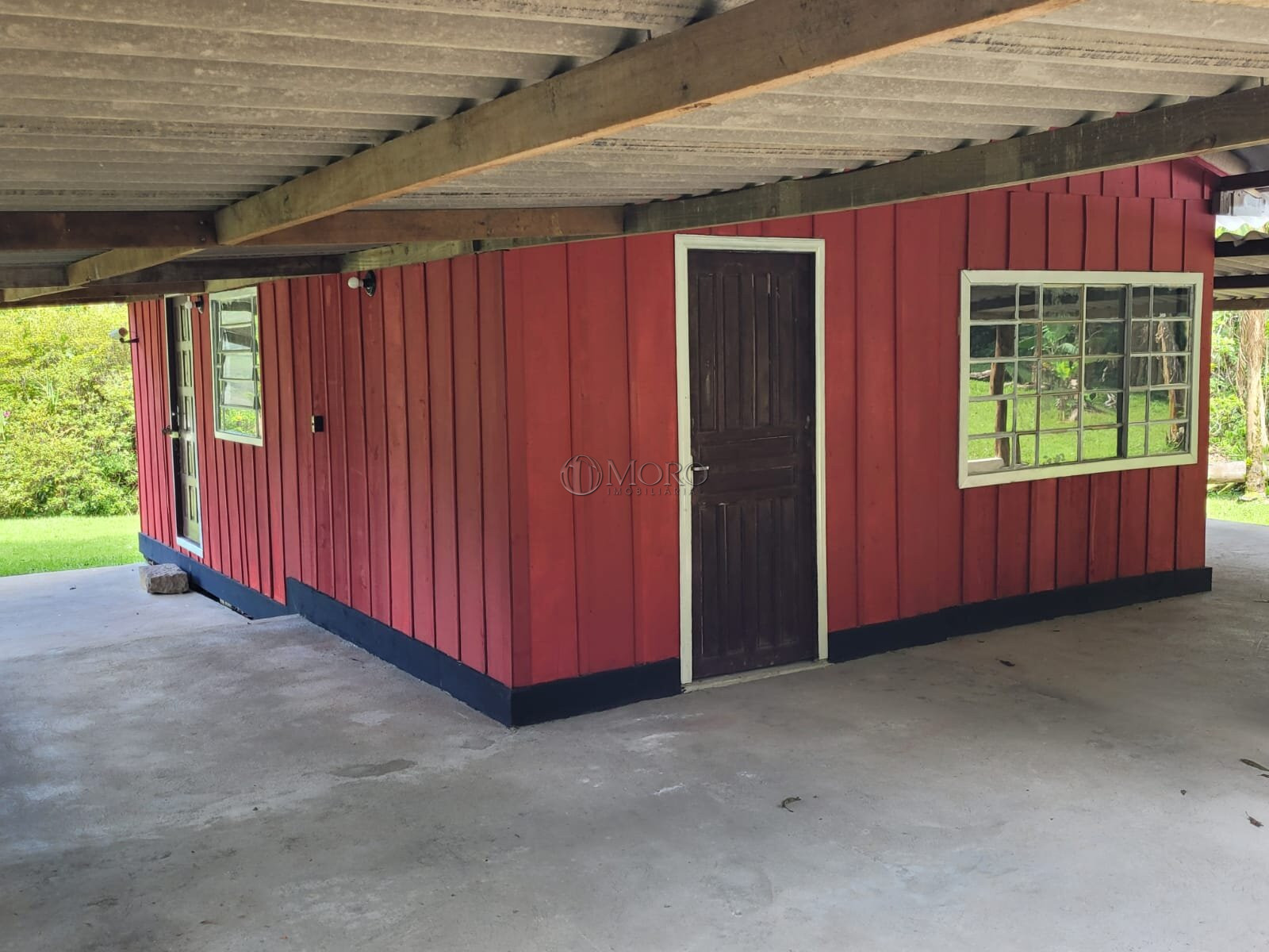 Sendo 1 casa de madeira na entrada, contendo 2 quartos, sala, cozinha, deposito, 1 banheiro e uma área de externa coberta somando 132 m².